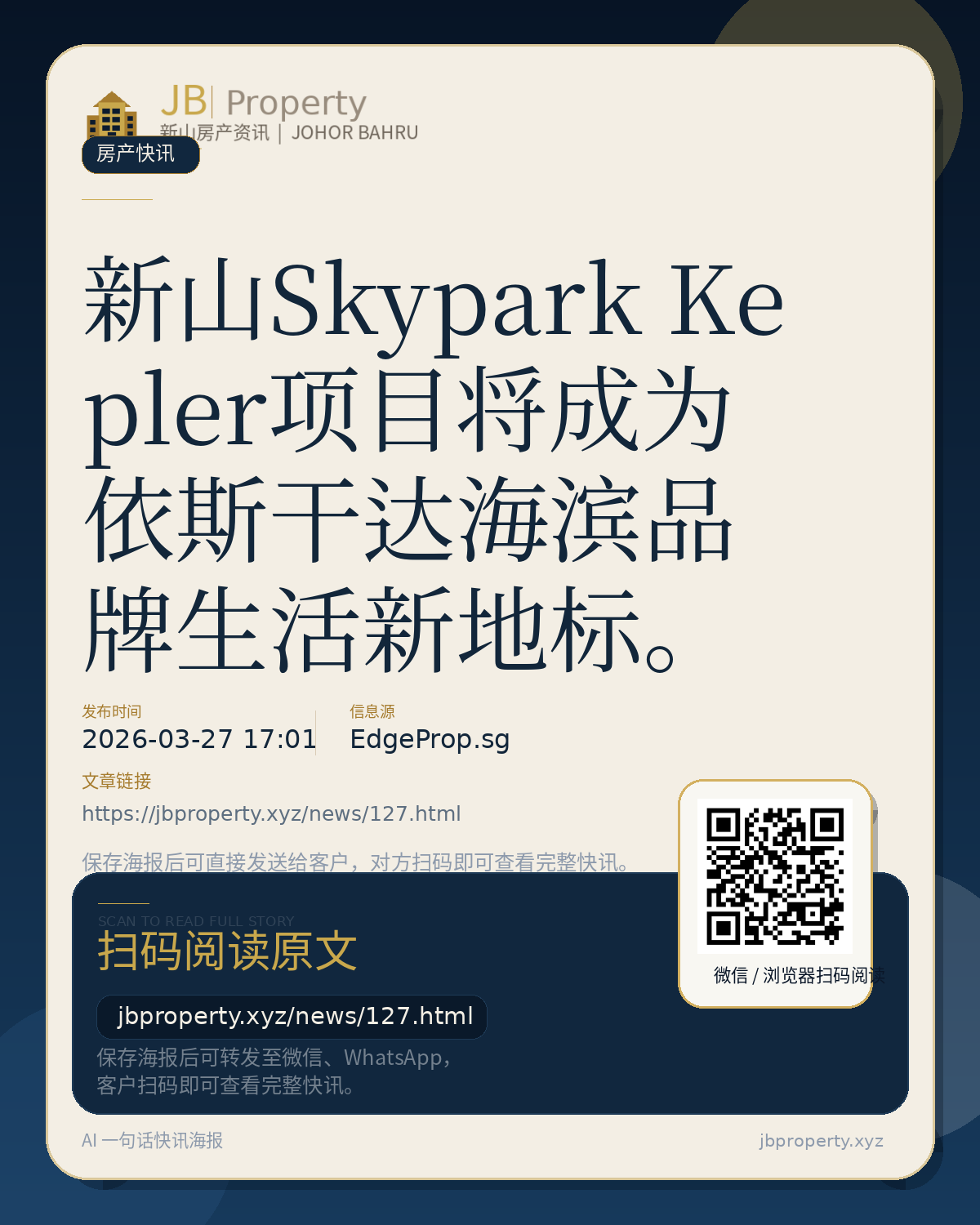 新山Skypark Kepler项目将成为依斯干达海滨品牌生活新地标。