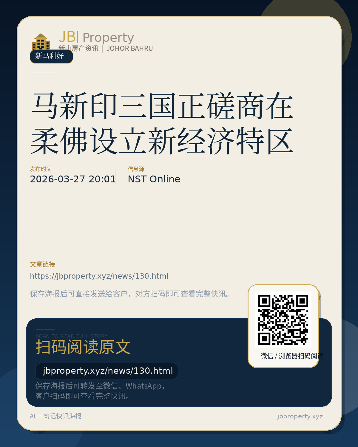 马新印三国正磋商在柔佛设立新经济特区