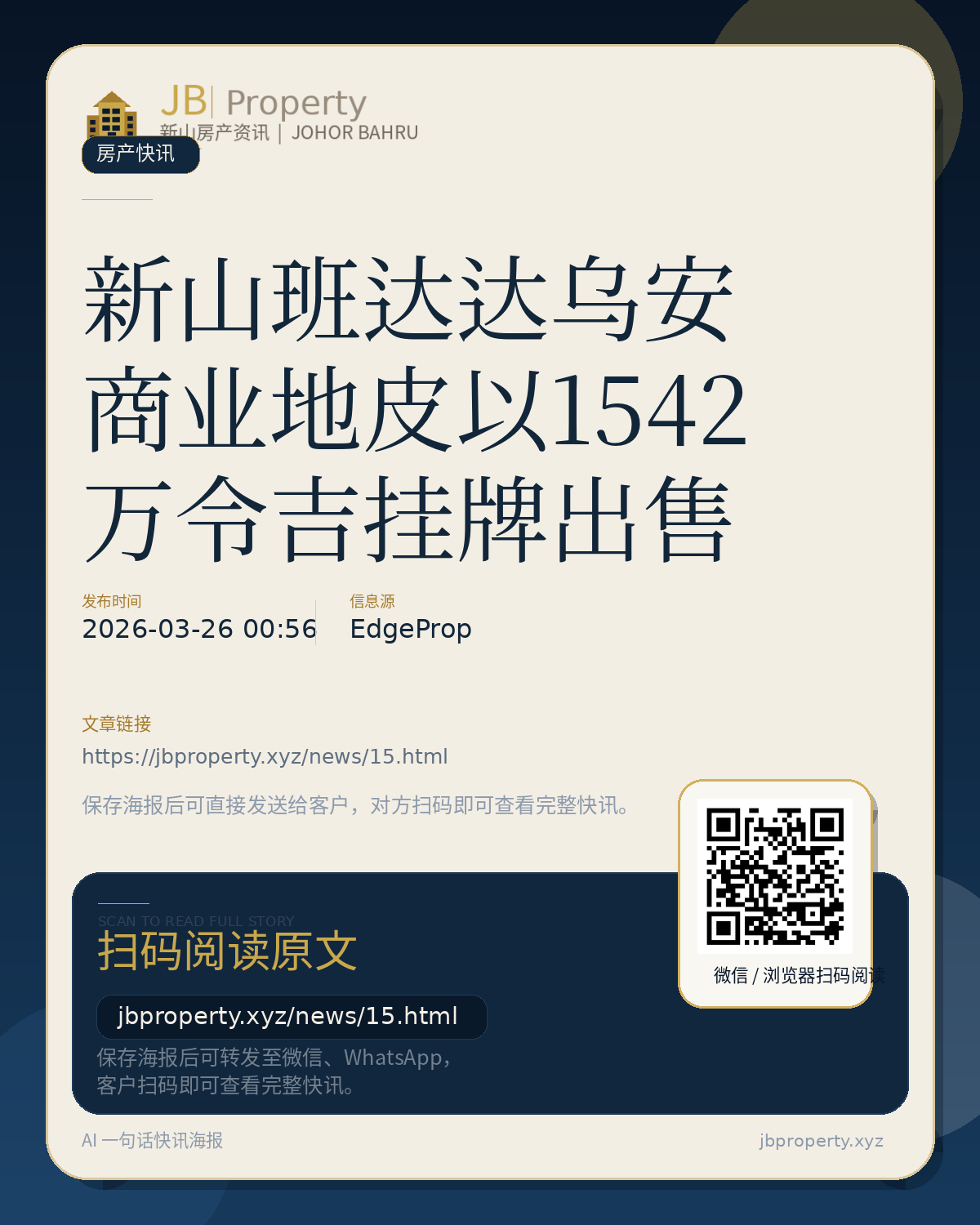 新山班达达乌安商业地皮以1542万令吉挂牌出售