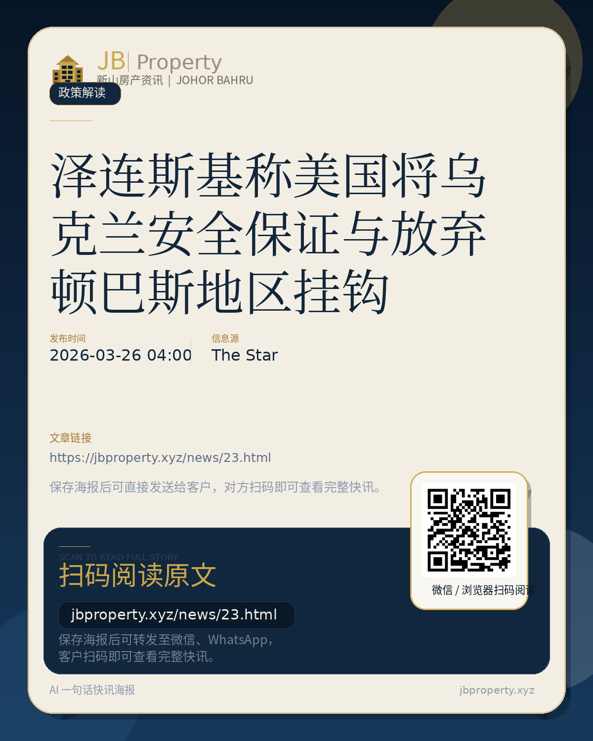 泽连斯基称美国将乌克兰安全保证与放弃顿巴斯地区挂钩