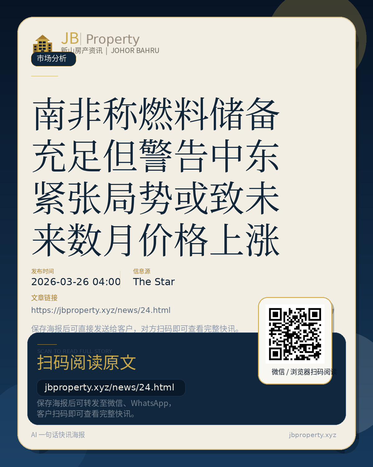 JOHANNESBURG, March 25 (Xinhua) -- South Africa has sufficient fuel supplies despite concerns over potential shortages linked to tensions in the Middle East, officials said Wednesday, while warning that a prolonged conflict could place pressure on availability and prices in the coming months. Read full story